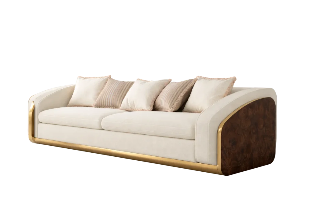 Modern sofa with clean, structured lines. Metal frame covering with sleek metal accents on the arms and base, it adds a touch of sophistication 3 Seater Sofa