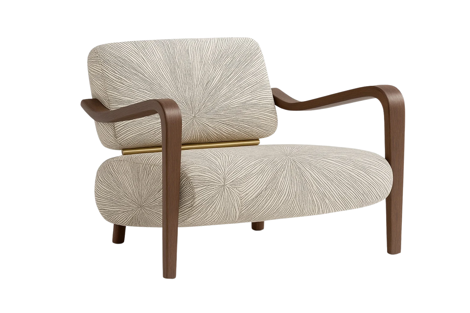 Accent chair featuring textured fabric upholstery with curved solid wood arms and legs adding a subtle brass accent beneath the backrest. Pair of Chairs