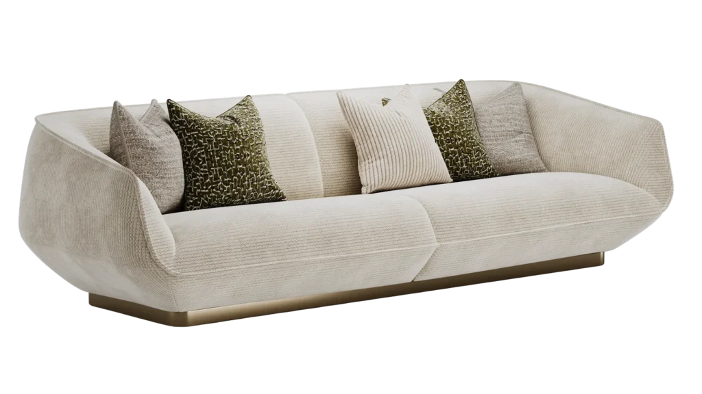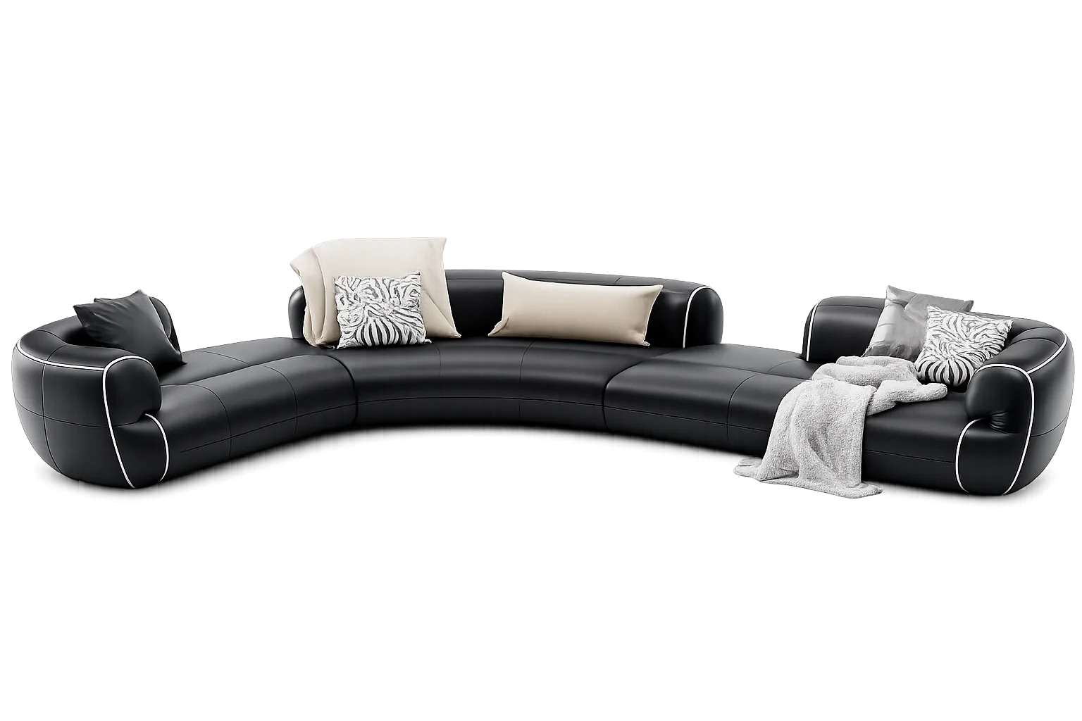 Contemporary curved sectional sofa upholstered in smooth premium leather with sleek piping details. Ideal for high-end spaces. 7 Seater Sofa