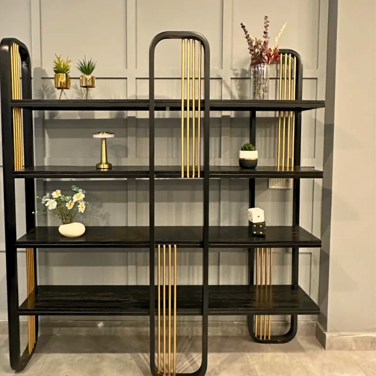 These racks are both functional and fashionable, with a durable metal construction and a black powder coating. Lamination sheets are used on the interior for added functionality.