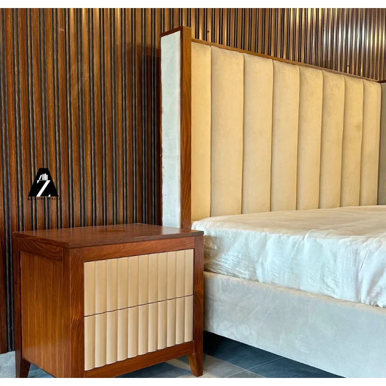With our royal bed, indulge in the height of luxury. Our royal bed’s Sheesham wood frame has a white pearl deco paint finish. A quilted pattern surrounds the edges of the bed’s headboard, which are painted golden. Transform your bedroom into a majestic retreat and live a life of pure sophistication.