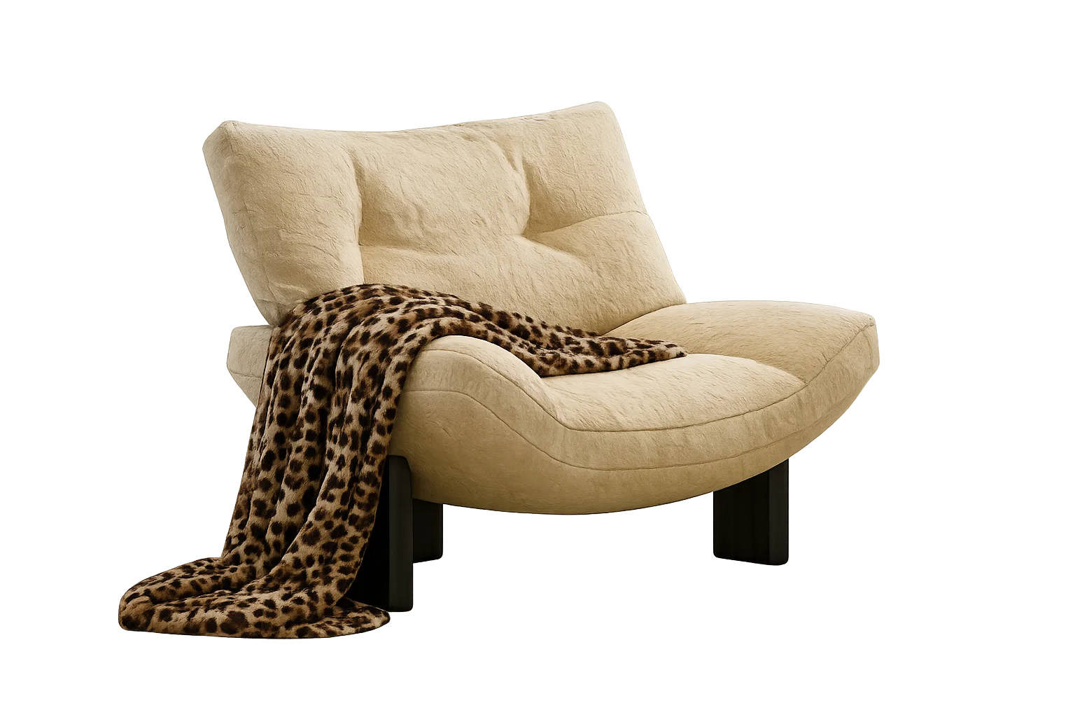A wide lounge chair upholstered in textured fabric with a sculptural, relaxed look with sturdy wooden legs in base – a statement-making design. Single Chair